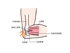 肘部管症候群の原因はさまざまですが、代表的なものとして