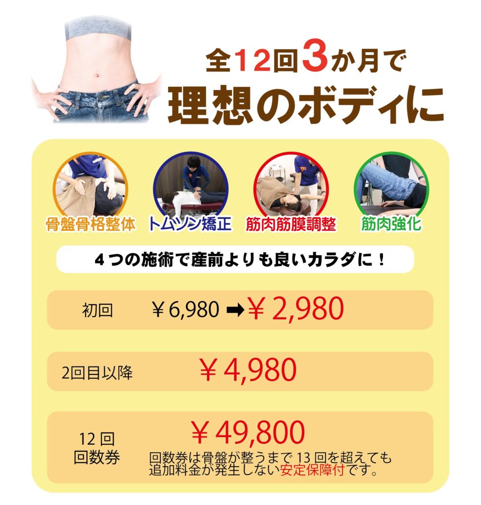 多少出産時の状況や産後のお体の状態に左右されますので、ご不安な方はお電話またはメールにてご相談ください。