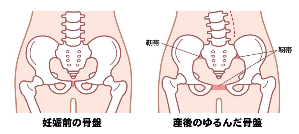 産後の骨盤に最も大きく現れる変化は「骨盤下部の開き」です。