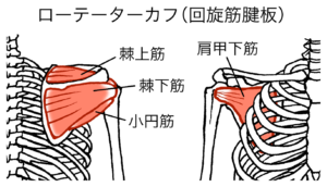 - 棘上筋 (きょくじょうきん): 最も損傷しやすい筋肉。腕を横に挙げる動作を担う。