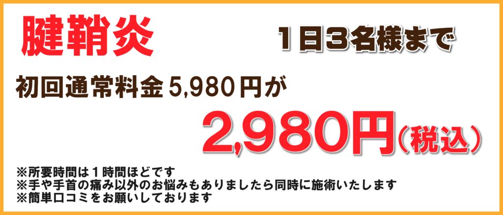 腱鞘炎は、我慢せずに早めに対応することで、回復も早くなりやすい症状です。「これって腱鞘炎かも?」「病院に行くほどではないけど気になる」そんな段階でも、お気軽にご相談ください。
